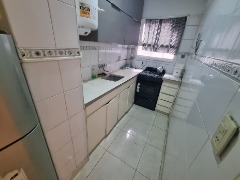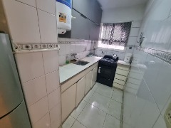 * Cocina integrada con barra desayunadora, anafe y horno, heladera con freezer, alacenas y buena superficie de trabajo.