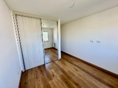 El dormitorio cuenta con dimensiones aproximadas de 3,00 x 3,03 metros, con piso flotante símil madera, placard con interiores completos y puertas corredizas espejadas, lo que amplía visualmente el ambiente. Posee ventana con excelente ingreso de luz natural y ventilación y se desarrolla como habitación en suite.